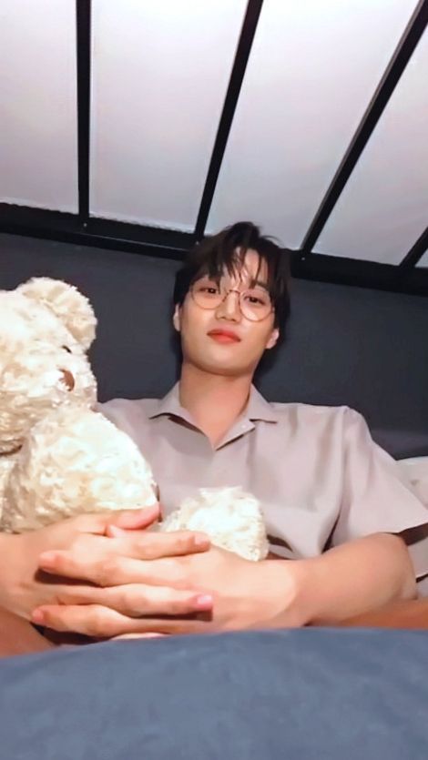一出去就看见早就收拾好的金钟仁抱着熊哈哈坐在床上看着她