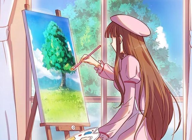 她原本是在临摹窗外的风景,但是总感觉缺了点儿什么。