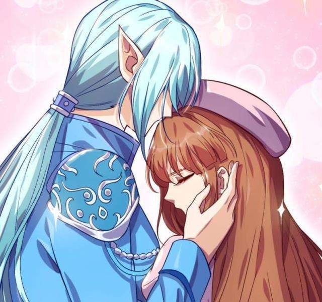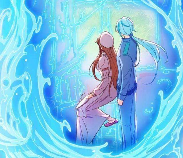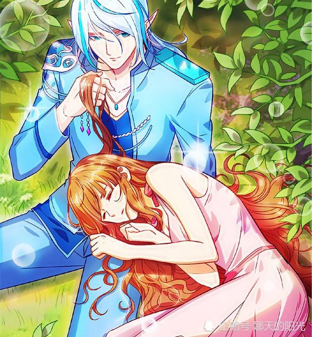蓝色光芒四射,他们两个人陷入了水的世界,水王子搂着她的腰身吻上了她的头发。
