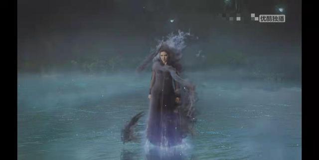 一阵阵黑气围绕中水柱中间,凝固成一个女人的脸,鬼气森然地盯着她们,随后黑气化作了一个可怕的黑衣女子幽魂,破水而出。