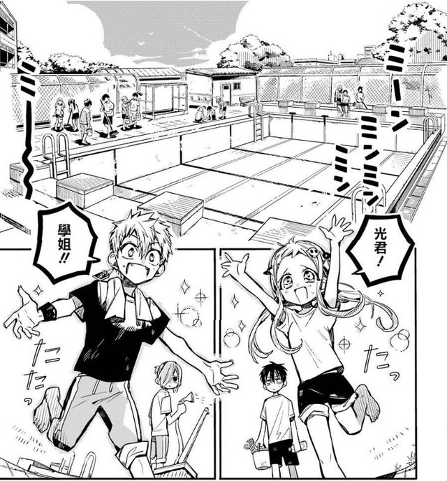 身后的柚木普同学给宁宁和源光泼水