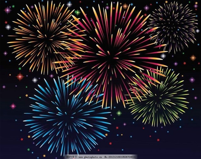 鞭炮飞上了夜空,绽放出艳丽的色彩。