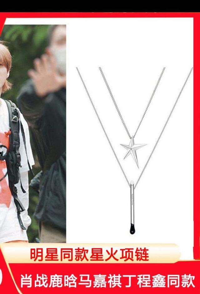 白皙的脖颈上面一条星火项链