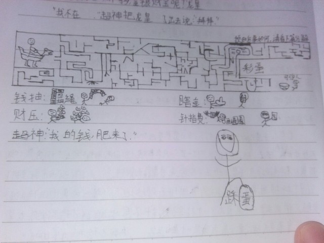打完之后他吃力的爬了起来,从口袋中拿出了一个指路针(还是要钱才指路的,超神发明),随后拿出了钱,他一边投钱一边靠着指路针回到了家(指路费八块)。