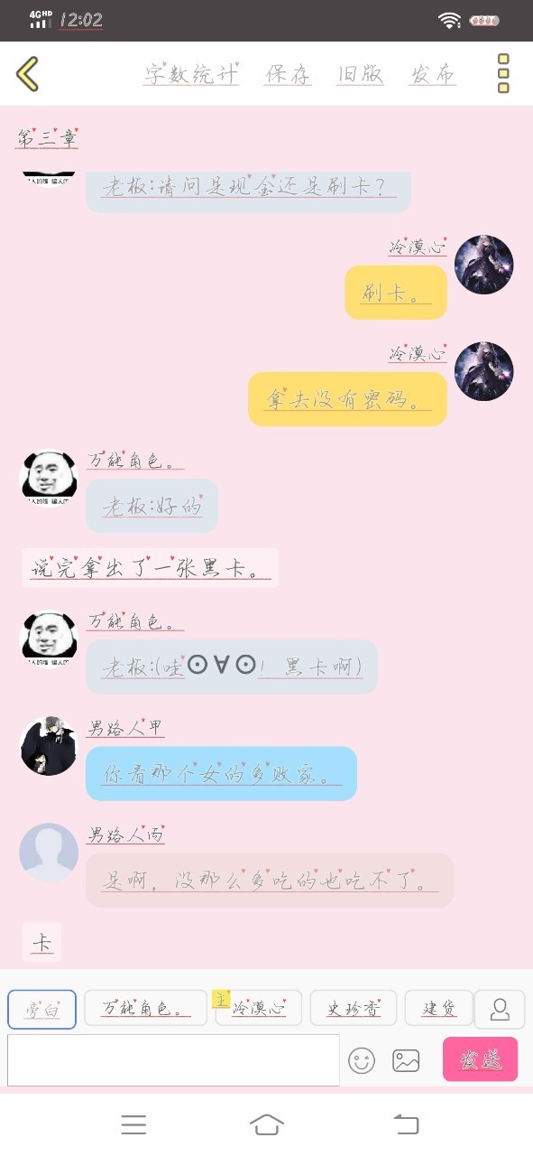 万能角色。:服务员:客官,您的卡。