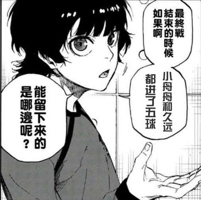 “最终结束的时候,如果啊,小舟舟和久远都进了五球,”蜂乐回说,“能留下来的是哪边呢?”