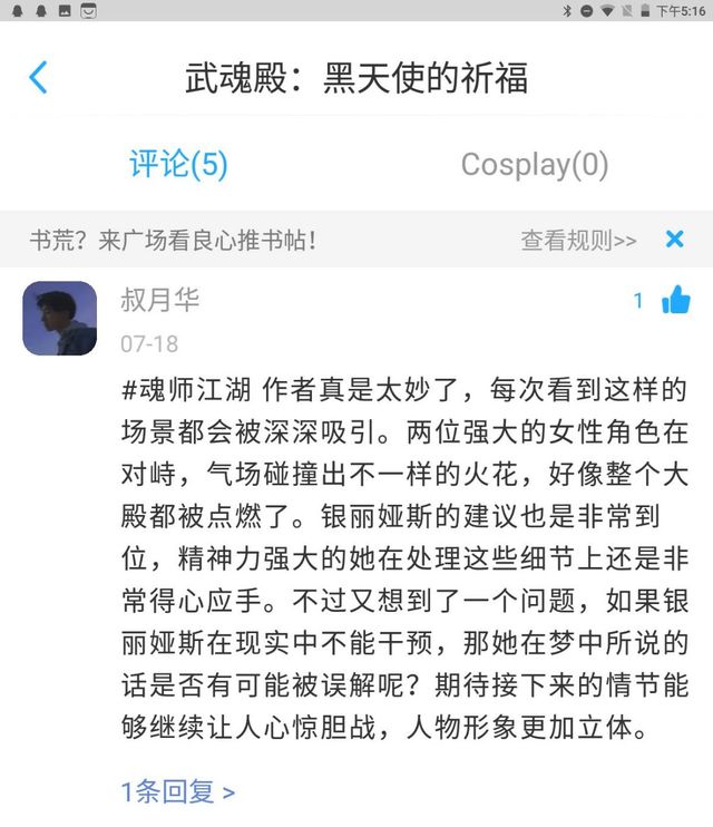 作者:感觉话题有点扯远了,总的来说,作者对于评论真的很欢迎,之前两位读者的评论实际上对我的帮助很大,他们让我重新去审视了一遍自己的思路和大纲,去对自己认知的修改。就像《西西弗斯神话》说的那样,我们要接受荒诞,就要忘记自己已知的荒诞。大家的评论是对我自己的想法的更正和补充,所以我很欢迎大家评论。