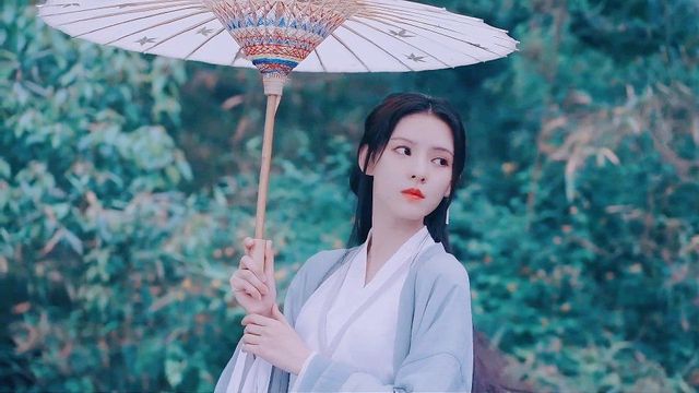 那位女子转过头露出温婉可人的笑容她撑着油纸伞朝他们走来