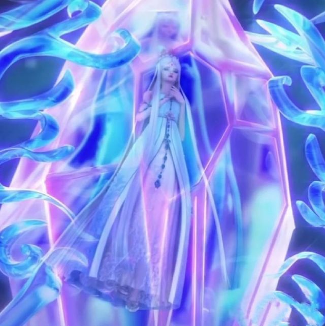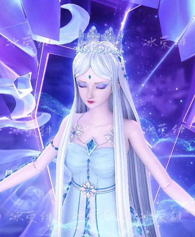 随着她们的呼唤,冰公主通过冰晶出现在镜空间