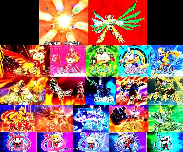 变身系列、五灵卫系列当中,猪猪侠它们的(金,木,水,火,土)五灵之力。