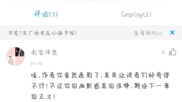 作者读者你的话语也让我觉得你的幽默感不错哦。
