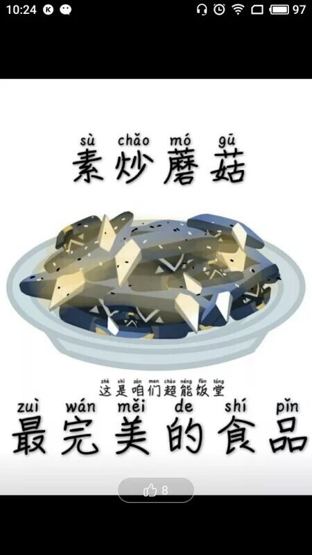 凯莉:素炒蘑菇怎么了吗?