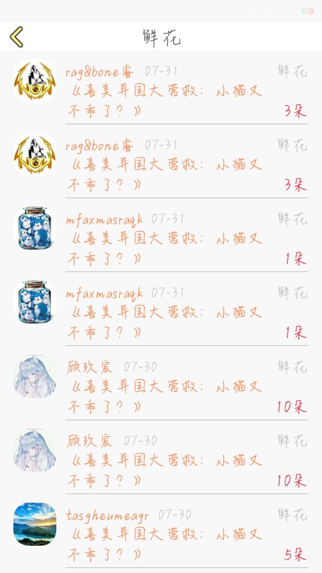 作者大大:谢谢大家都能喜欢我的小说作者大大每天都能看见大家的收藏,由于收藏的人数太多了,作者大大实在是拍也拍不完,再加上玩手机的时间有限,作者大大只能暂时先不发收藏的图片啦。现在先发送花花的图片,等这一部小说完结后,我再把收藏的和送花花的,还有互动的,还有关注的都发出来,希望大家能原谅作者大大!