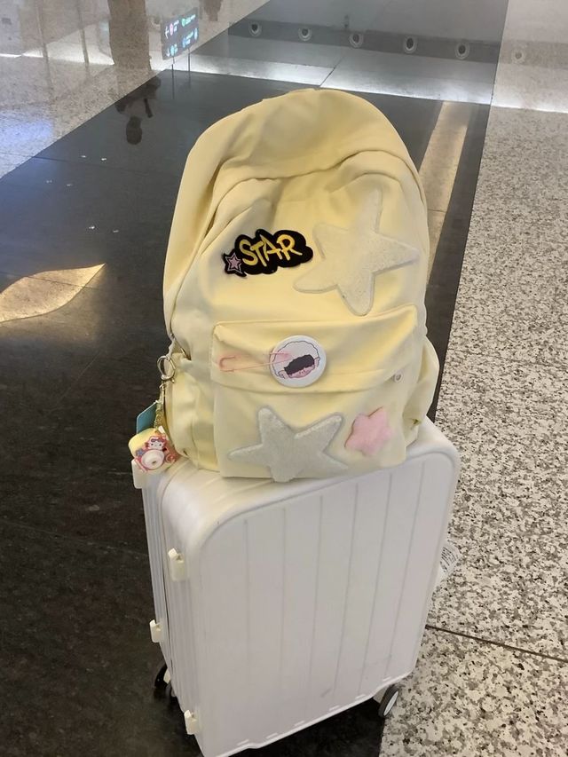 机场一位女生拉着行李箱在等人