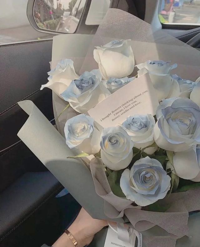 我这下终于放心,接过他手里的花,白色中间点缀着些许淡蓝,显得十分特别