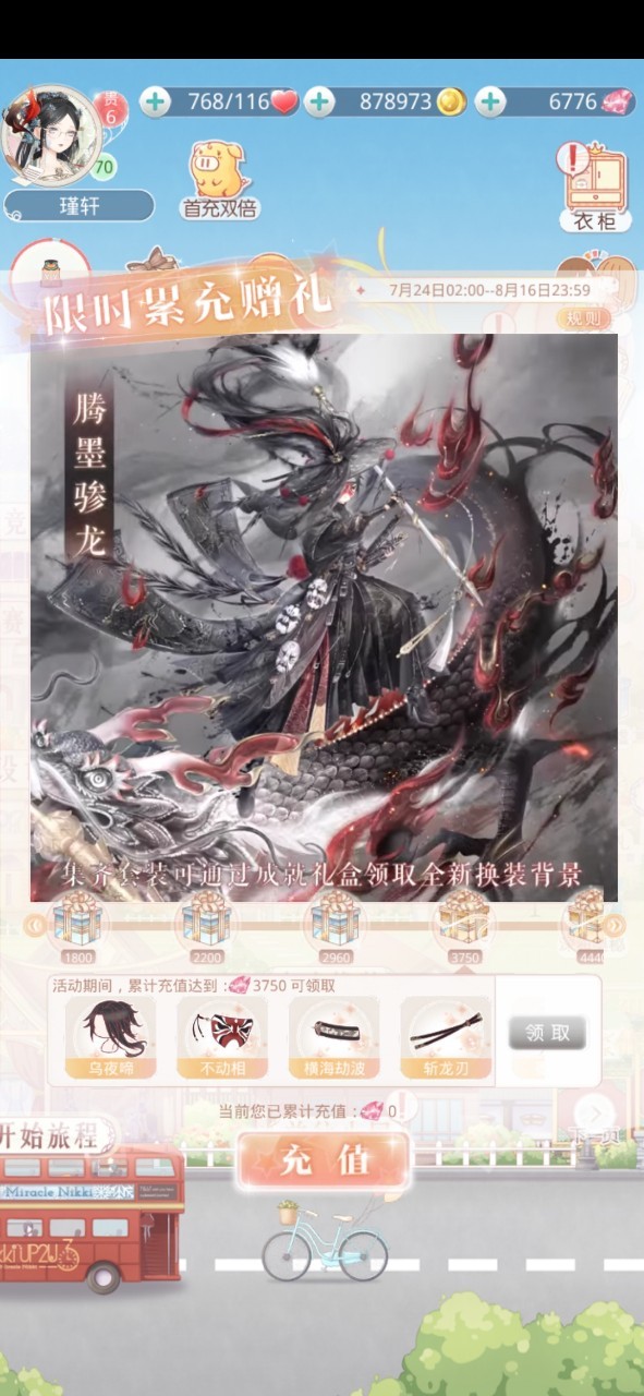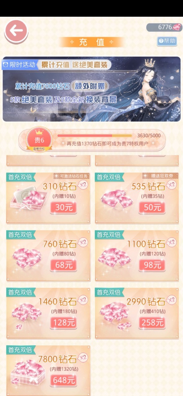 瑾轩:只要充值满624元,即可获得本次活动全部套装