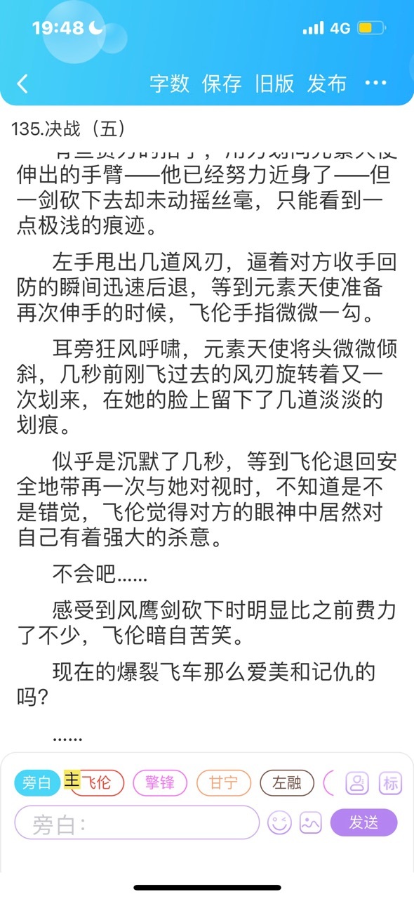 短暂的几秒过后,外面天色昏暗,乌云密布。虽然看不见但是凭着感觉料到时间差不多,飞伦握着剑的手反转,剑尖指向不远处的元素天使。