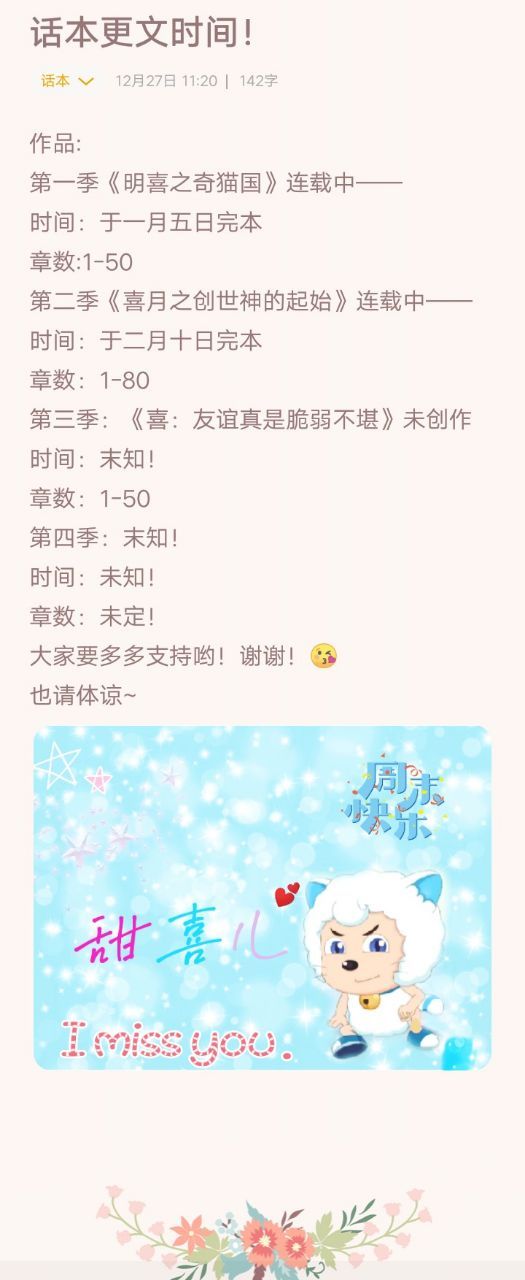 由于作者生病了,病没好,所以完本时间再次推迟