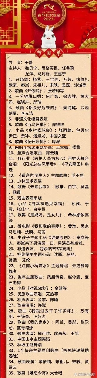 星光叻:最近刷深鹿文,看见央视春晚节目单啦!