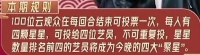 我们男队女队都已经集结完毕,节目组要选出今晚表现最好的四位艺员,组成四大聚星。