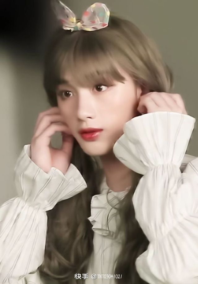 落橙忆给丁程鑫一个假发,给丁程鑫画了一个淡妆