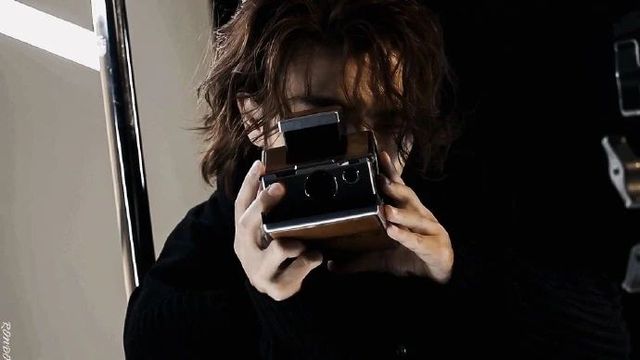 东海一边看着摄像机里自己的“杰作”,一边叫伯贤凑近一同欣赏。