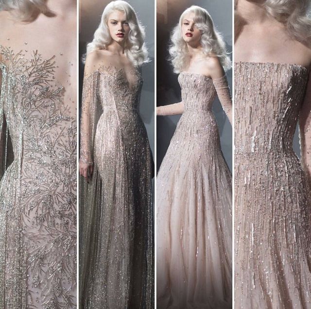 午餐结束后,阿芙随着艾玛琳和莎莉娜来到了化妆间,阿芙看到了Gucci运来的那套价值四千万美元的礼服,是一套银色流苏布满昂贵钻石的礼服,礼服裙摆上都是一颗颗华美昂贵的钻石,上半身也是镶满了钻石,很是华美。(似下图,第一张的版型外加第二张的华美,给个大概。)