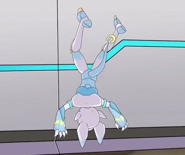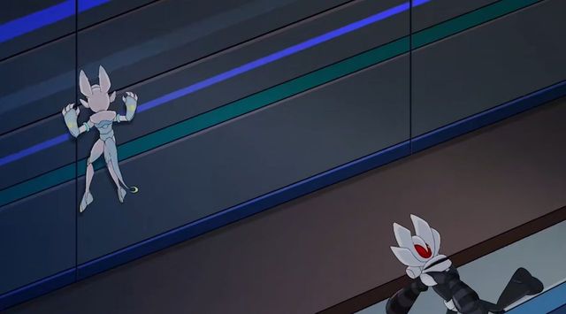 雷伊也飞了出去查看格莱奥的踪影,但是格莱奥居然再次凭空出现,雷伊一时躲避不及被格莱奥用针筒扎在了胳膊上。