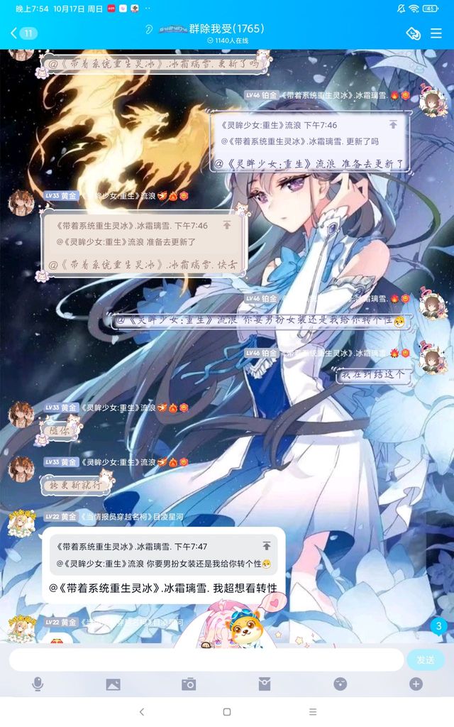璃雪:“今天又被苏黎阳geigei和阿狸催更了。”