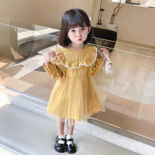 黄色小长裙配上白色花边袜,还特地提了一个米白色的小手提包