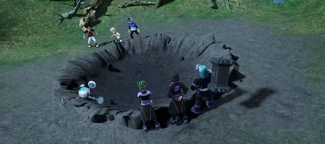 修:[在地上砸出一个大坑]