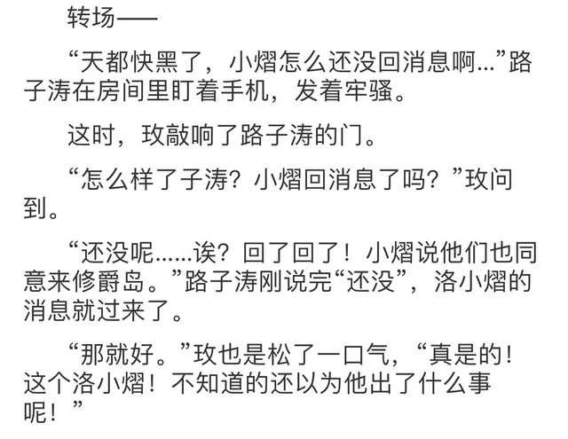路子涛:小熠你白天一整天没回消息,玫他们差点以为你出事了。
