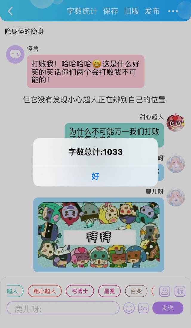 隐身怪看着小心超人和甜心超人紧张的样子暗暗得意(本来想嚣张的笑出声的但是会被发现只好克制住自己)“哼!只要我不出声你们不就发现不了我了吗!看看你们现在这副紧张兮兮的样子我就觉得好笑哈哈哈哈哈~唉可惜不可以出声不然我一定会放肆嘲笑你们的”