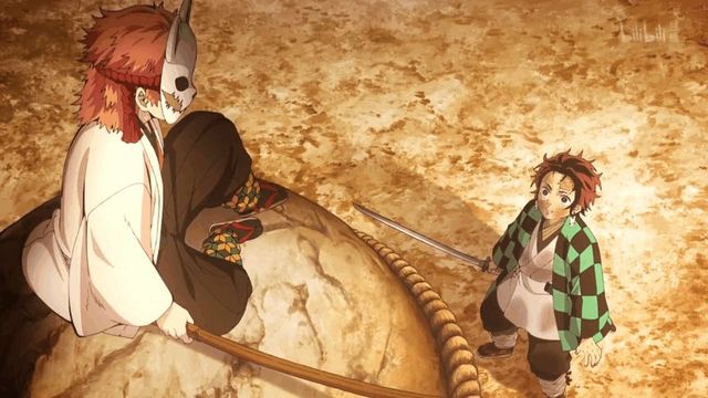 他抽身攻向炭治郎,炭治郎看着眼前戴着狐狸面具的橘发男子,橘发男子声音稀嘘。