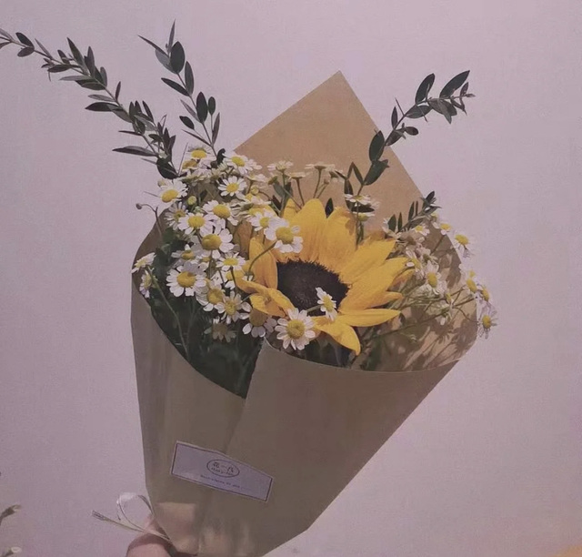 就在她还在发呆的时候,一束花突然出现在面前。