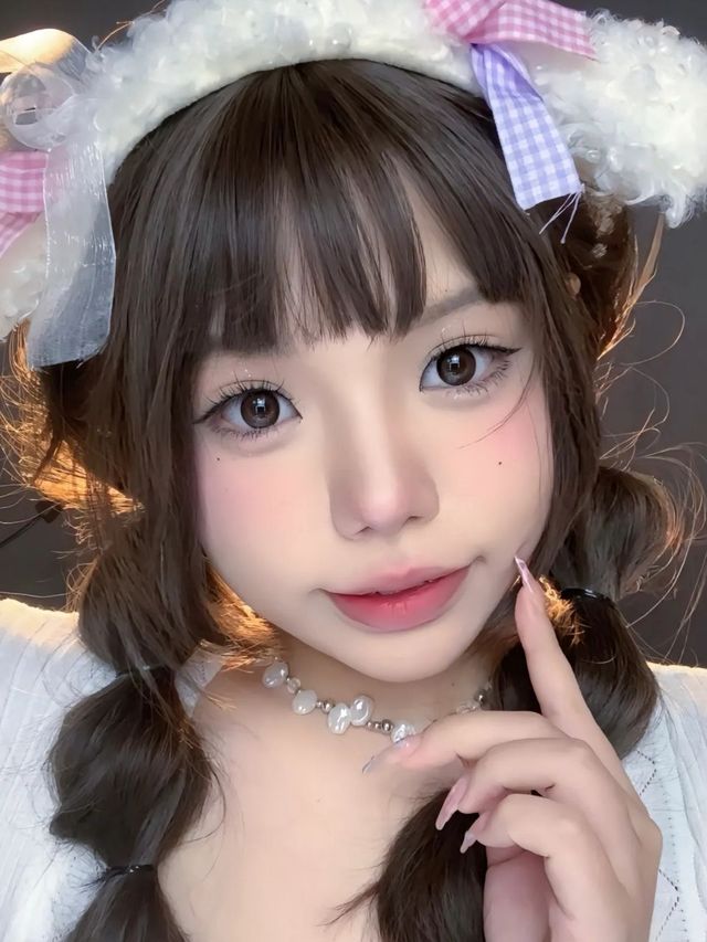 在女仆咖啡店打工就是要漂亮,她的化妆品都不是很贵,但也不伤脸足够使用,她画了一个和女仆装很是搭配的精致少女亚洲妆,那个店面的主题就是亚洲女仆咖啡店主题,她不可能去化那些夸张的欧美妆,因为本来就千篇一律,进亚洲咖啡店主题肯定是要看不一样的,所以她们都化自己国家的妆。(类似下图妆容)