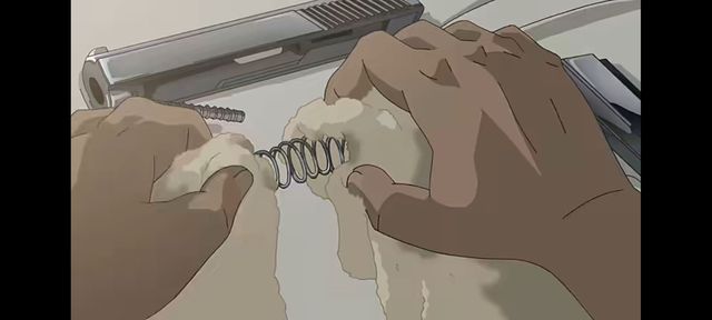 此时的他,正在保养枪,虽然平时也会经常保养。