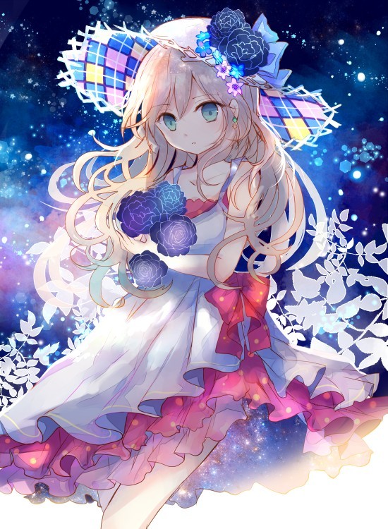 说着蓝色的花瓣飘过,她消失了。