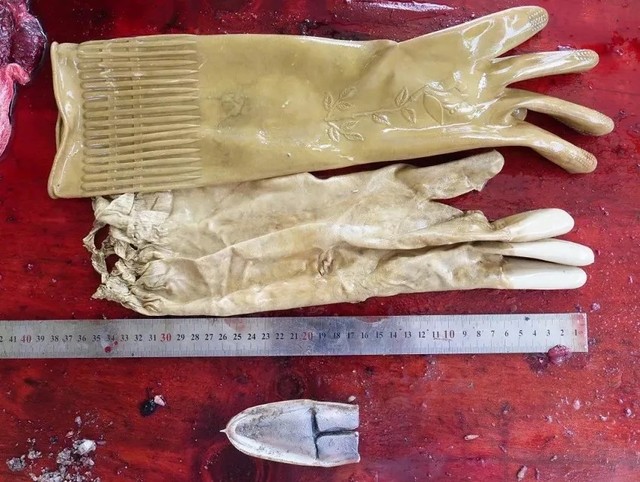 齐文轩:没有天敌,未能寿终。原来,她死于胃里面的两只橡胶手套。这两只来自不同副的手套,一只已经破损严重,颜色褪去不少;一只还基本完好。