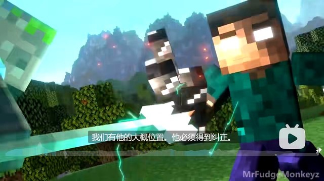 再看看黑盾H左护法是个武器级H,所以估计黑盾Herobrine的右护法就是个拿着黑曜石当棍子使用的武器级H。