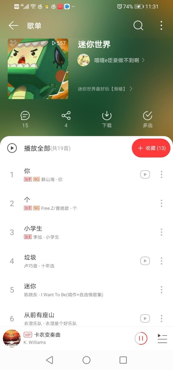 作者汪曦:我首页上刷到这个歌单,人气竟然很高!