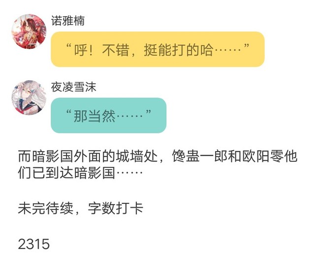 诺雅楠捂着受伤的胳膊,边咳嗽边看着面前的夜凌雪沫等人说道……