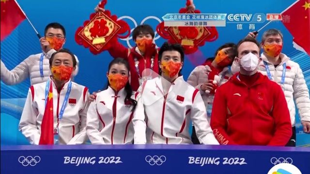 与此同时首都体育馆内花样滑冰团体赛双人滑短节目的比赛正在进行。中国队派出了隋文静/韩聪