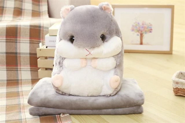 演示了一下,原来仓鼠抱枕背后有一条拉锁,拉开以后里面是一条叠好的法兰绒薄毯。