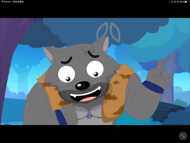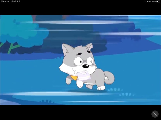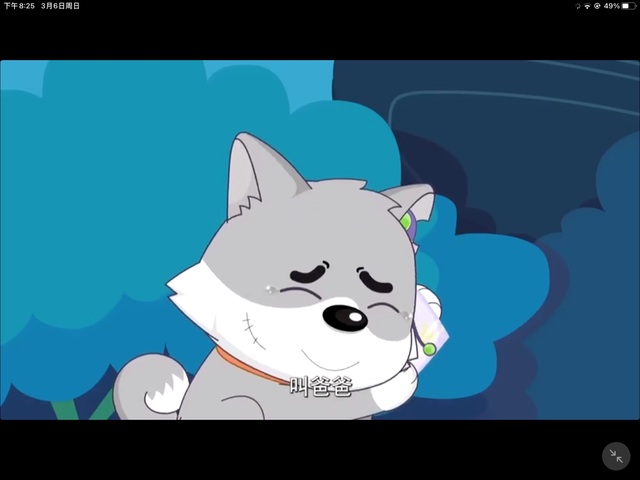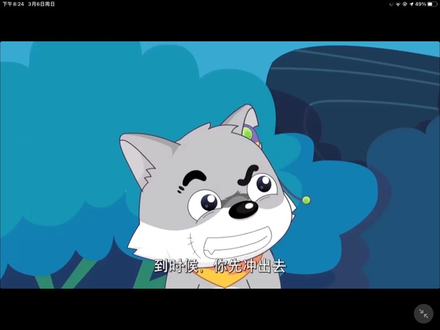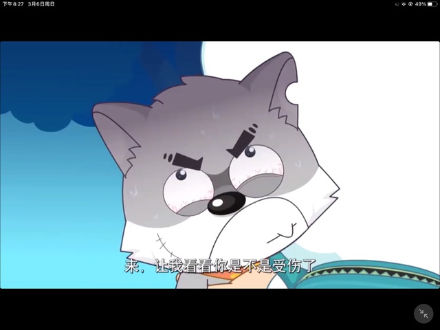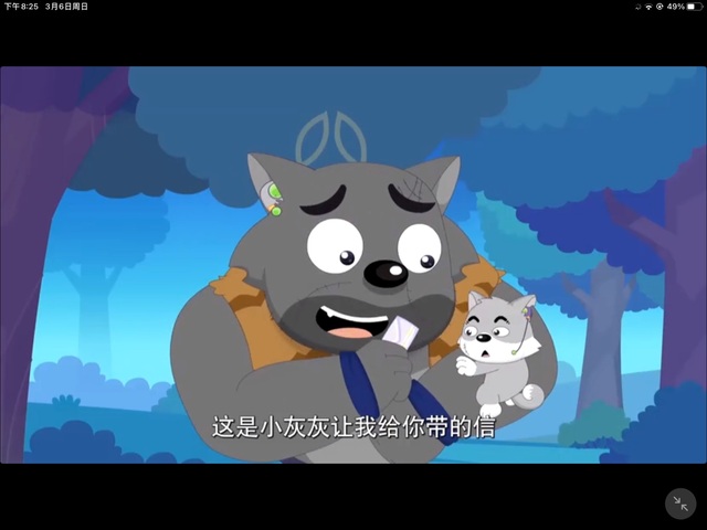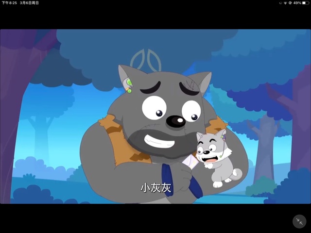 灰太狼看见小灰灰 ,立刻变了脸,看向沸羊羊温和地说着