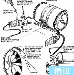 哈莉莱茵:下面的两张图是官方的手书解析图,非常详尽的解释了立体机动装置布满全身的皮带结构起到的作用,以及各个部件的大致结构和用途