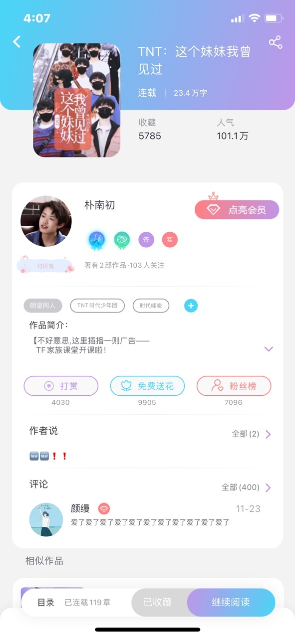 这个账号最开始是我姐的号 她几年前一头热开了exo的文 然后更了一阵不更了 后来上大学每天课和作业太多了没时间 我就跟她把号要了过来
