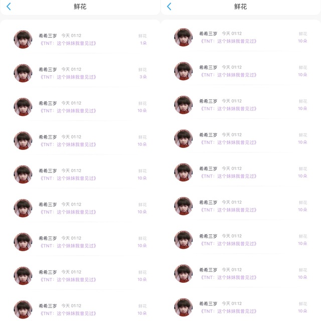 朴南初:谢谢源美宝贝和希希宝贝的好多花花连击!!!!!爱你们!!(因为太多了我就拼起来了)