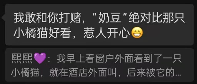 沈希澈:我早上起来看窗户外面看到了一只小橘猫,就在酒店外面叫,后来被它的主人抱走了,我看到的时候心都要融化了