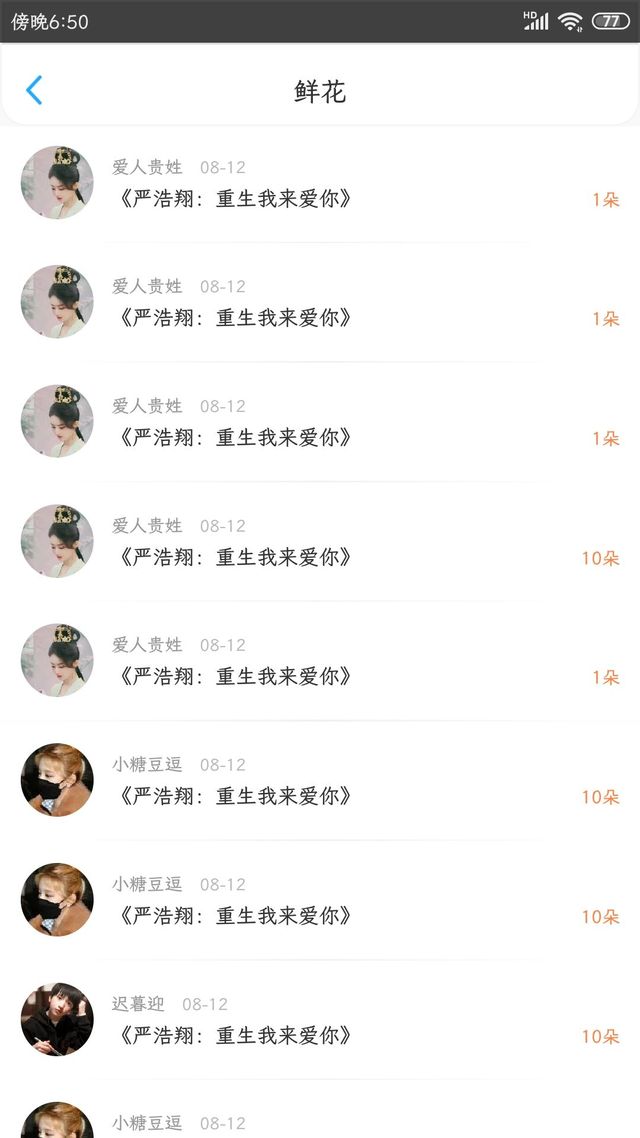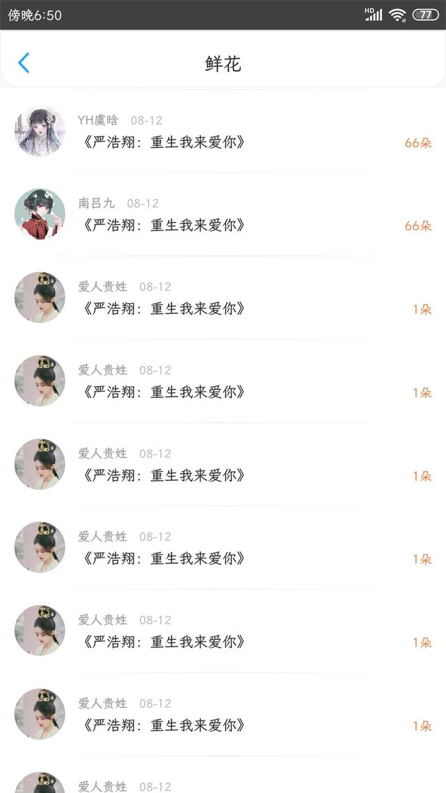 小琪:鲜花加更4章。